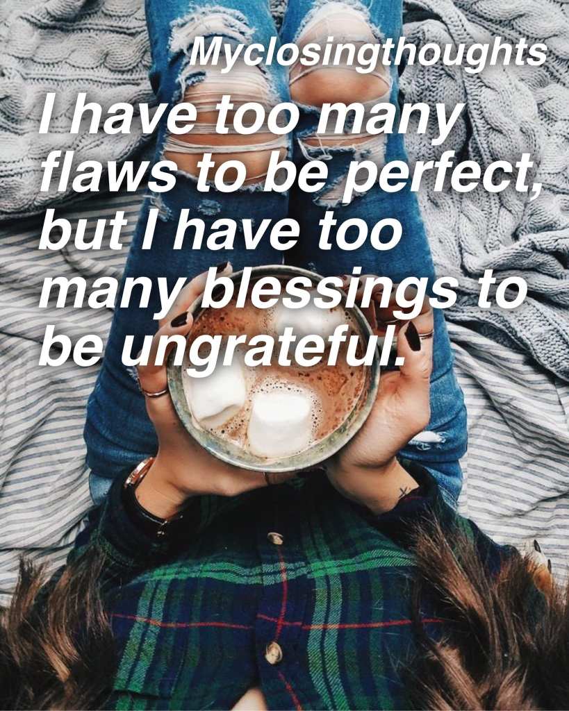 - “I have too many flaws to be perfect, but I have too many blessings to be ungrateful.” – Unknown