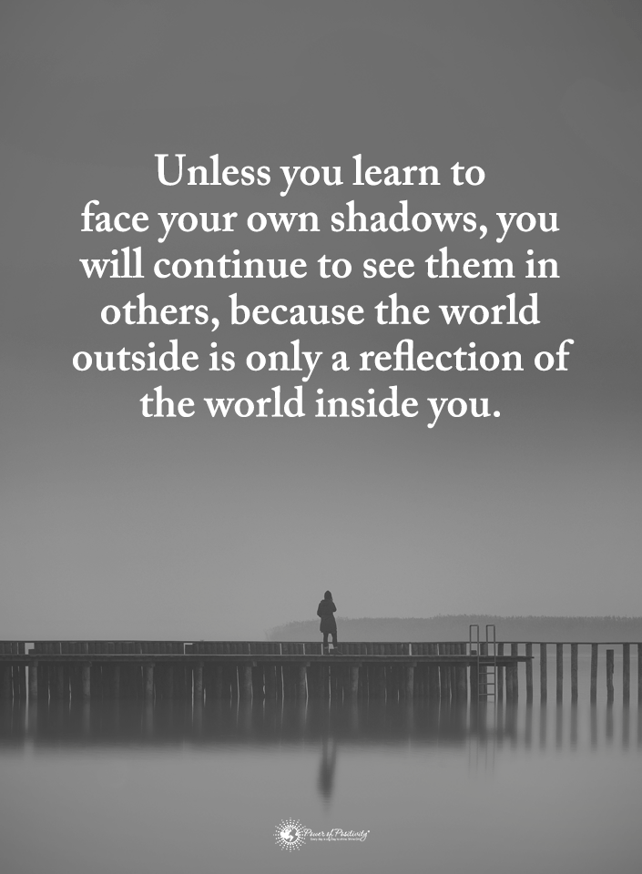 - “Unless you learn to face your own shadows, you will continue to see them in others, because the world outside is only a reflection of the world inside you.” – Unknown