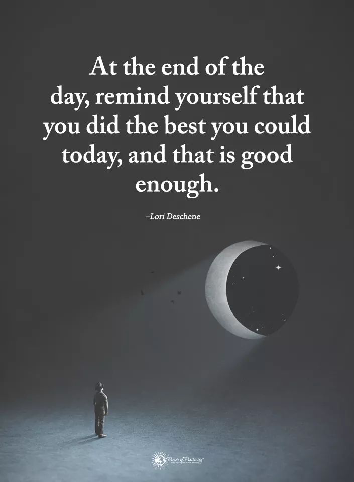 - “At the end of the day, remind yourself that you did the best you could today, and that is good enough.” – Lori Deschene