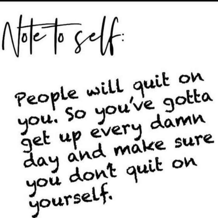 - “Note to Self: People will quit on you. So you’ve gotta get up every damn day and make sure you don’t quit on yourself.” – Unknown