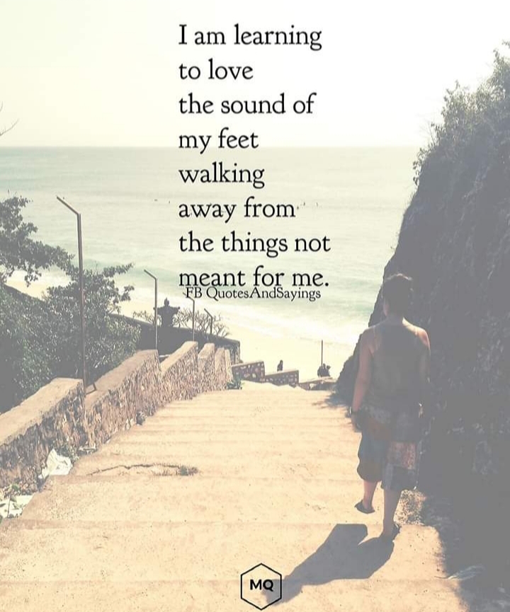 - “I am learning to love the sound of my feet walking away form things not meant for me.” – A. G.