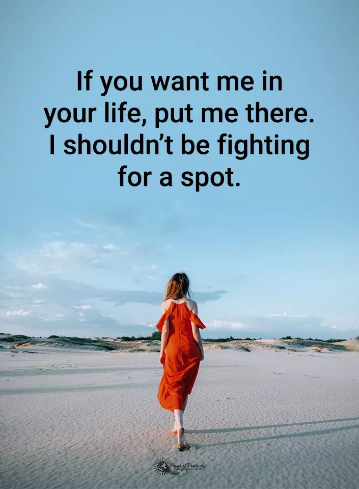 - “If you want me in your life, put me there. I shouldn’t be fighting for a spot.” – Unknown